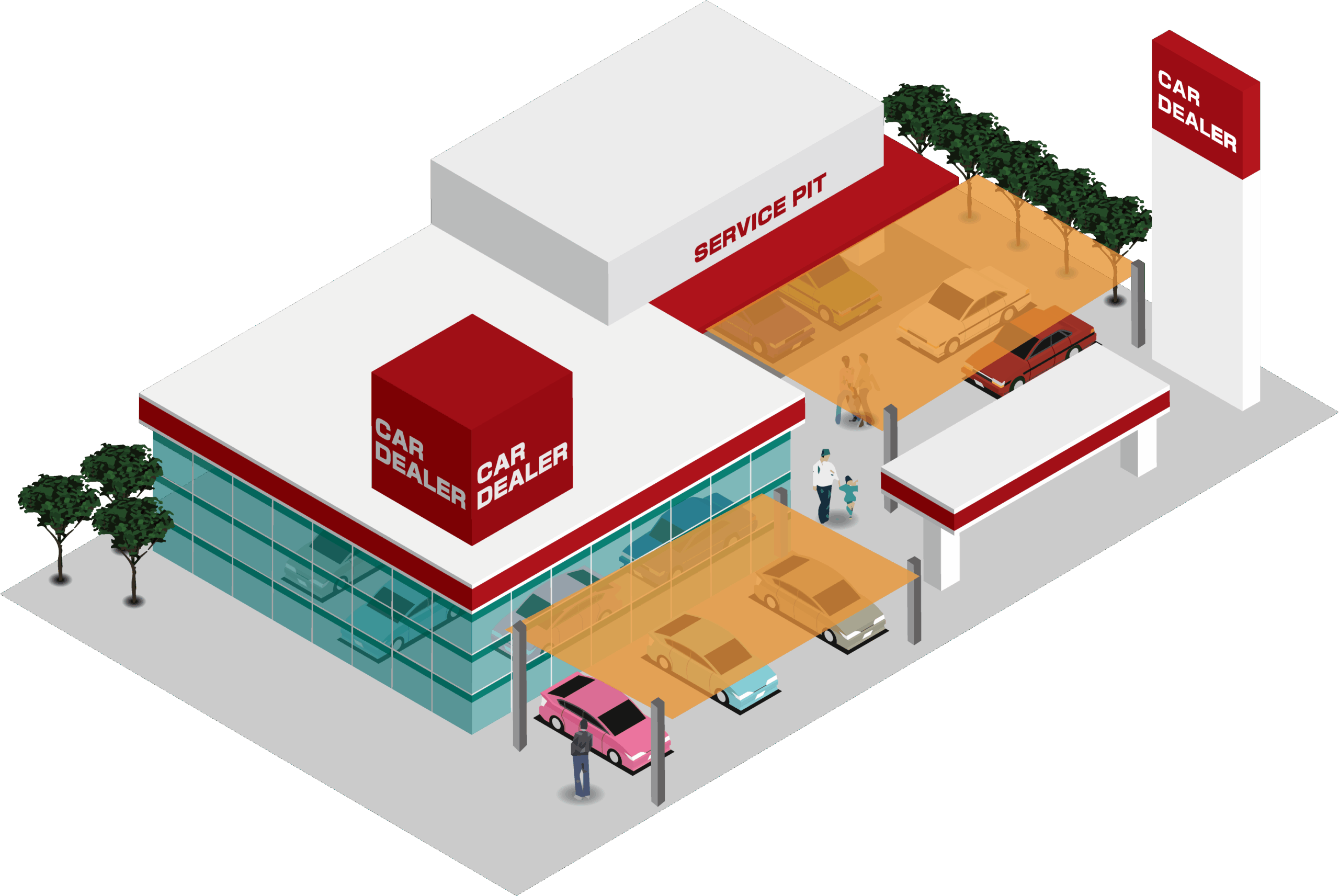 園庭・グランド以外にも、自動車展示場に設置することで、展示車を紫外線による劣化から守ることができます。